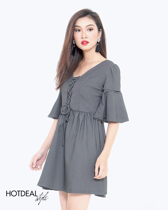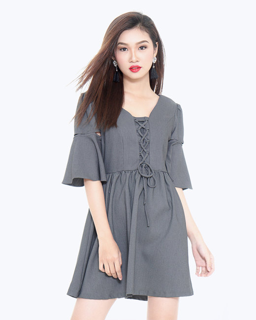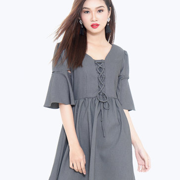 Đầm Đan Dây Tay Loe Emma Màu Xám