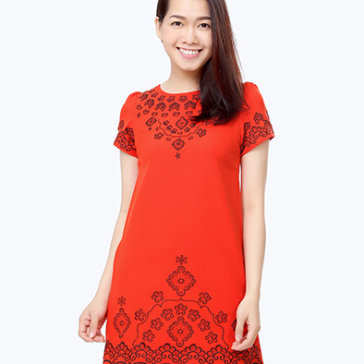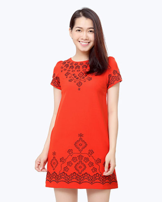 Đầm Thêu Hoa Sắc Màu Màu Cam