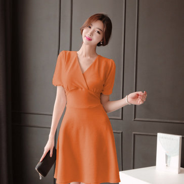 Đầm Xòe Cổ Chéo Duyên Dáng Màu Cam