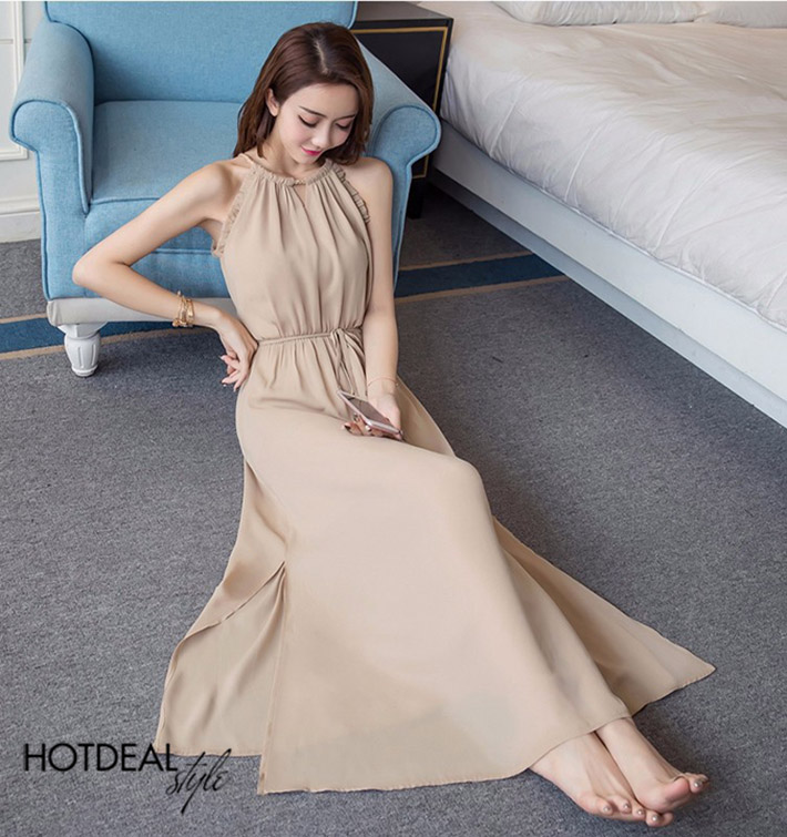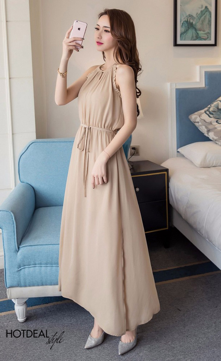Đầm Cổ Yếm Xếp Ly Tay Thời Trang - Form Đầm Dài, Mang Đến Vẻ Đẹp Ngọt Ngào, Nữ Tính Cho Bạn Gái. Giá 280,000 VNĐ, Còn 185,000 VNĐ, Giảm 34%. Chỉ Có Tại Hotdeal.vn!
