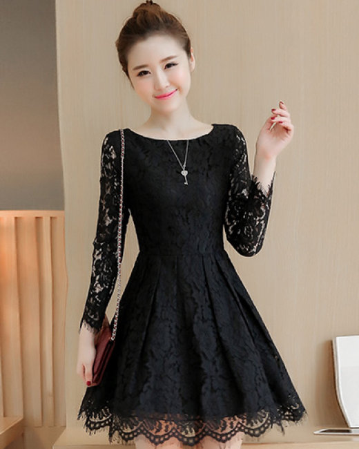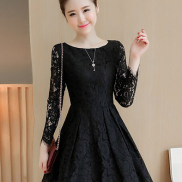 Đầm Xòe Dự Tiệc Ren Nổi Thanh Lịch Màu Đen
