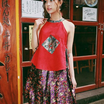 Set Bộ Chân Váy + Áo Yếm Gấm Màu Đỏ