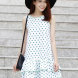 Đầm Cổ Tròn Viền, Nhún Bèo Trắng Chấm Bi Xanh Ngọc