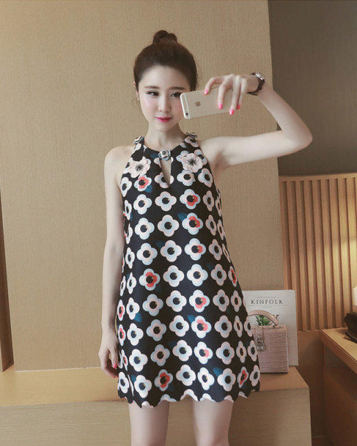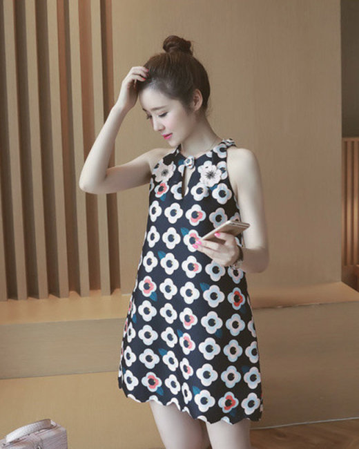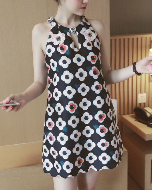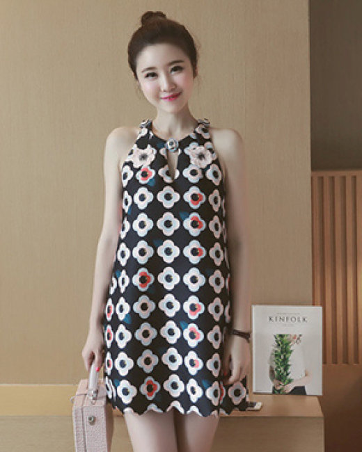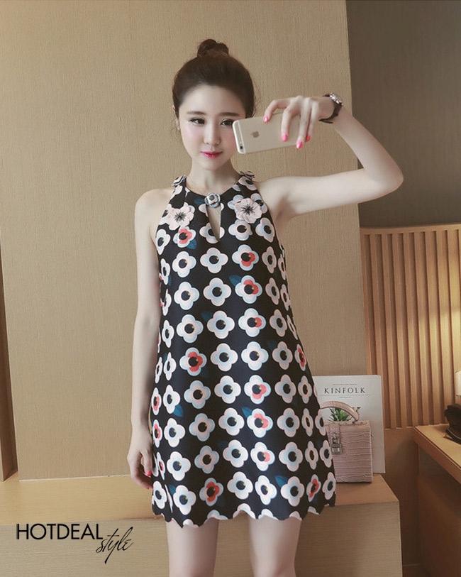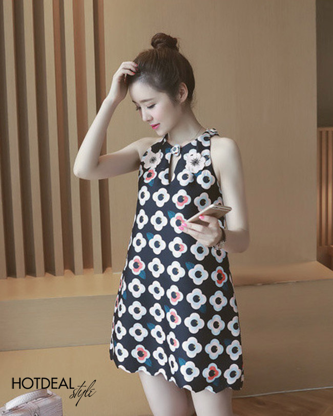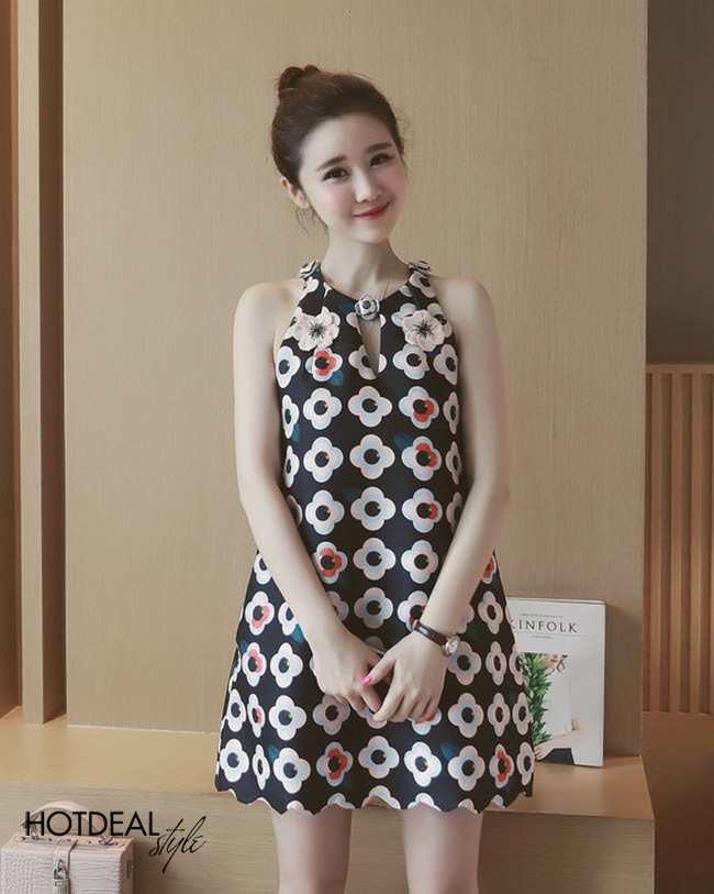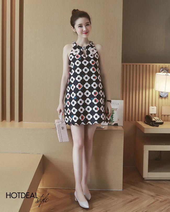 Đầm Suông Hoa Cổ Yếm Alice