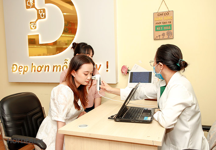 Bước 1: Thăm khám và tư vấn, soi da trực tiếp nhằm xác định chính xác tình trạng và đưa ra liệu trình phù hợp.