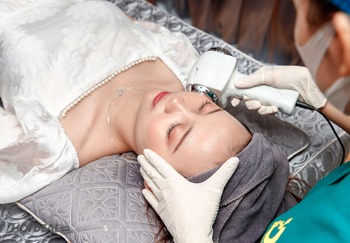 Bước 4: Điện di Cryo dưỡng chất và vitamin C làm trắng da.