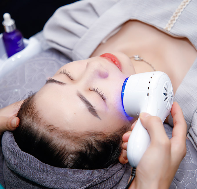 Bước 14: Đắp mặt nạ da mụn+ Chiếu ánh sáng sinh học