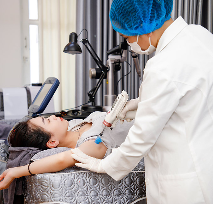 Bước 4: Thực hiện việc trị thâm nách bằng tia laser với bước sóng thích hợp.