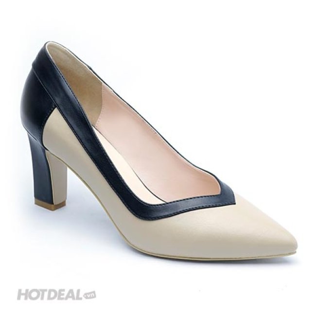 Giày Sandal Cao Gót Màu Đen- Kem