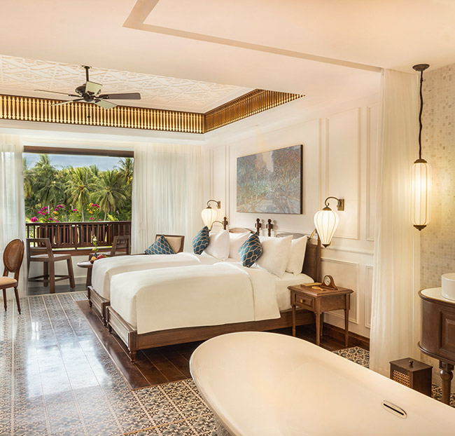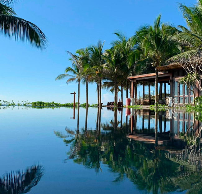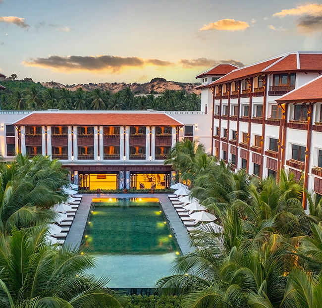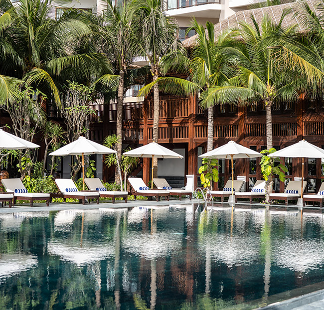+ Tận hưởng bãi biển riêng và hồ bơi lớn phong cách Đông Dương thơ mộng.
