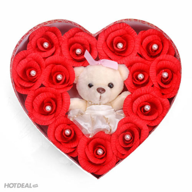 Gửi Lời Yêu Thương Đến “Nửa Kia” Của Bạn Với Hoa Gấu Bông Đáng Yêu – Sản Phẩm Handmade Cực Kỳ Độc Đáo, Đựng Trong Hộp Trái Tim Xinh Xắn. Giá 280.000 VNĐ, Còn 165.000 VNĐ, Giảm 41%. Chỉ Có Tại Hotdeal.vn!