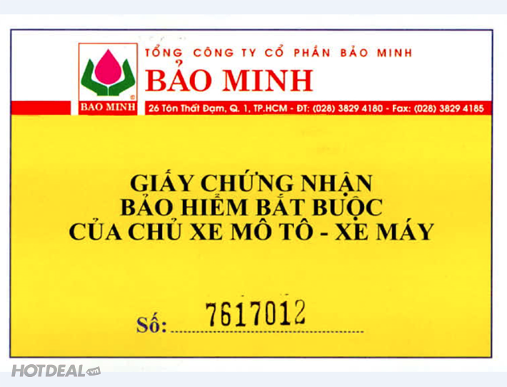 Bảo Hiểm Bắt Buộc Xe Gắn Máy + Bảo Hiểm Tai Nạn 2 Người Ngồi - Ưu Đãi Sốc, Chính Gốc Bảo Minh. Voucher 86,000 VNĐ, Còn 49,000 VNĐ, Giảm 43%. Chỉ Có Tại Hotdeal.vn!
