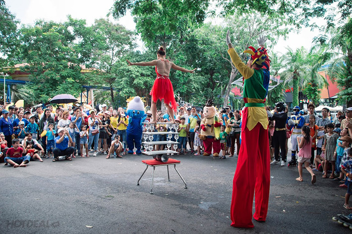 - Với vé trọn gói, quý khách sẽ được miễn vé cổng, chơi thỏa thích cả ngày với hơn 30 trò chơi và xem miễn phí tất cả các show diễn tại các sân khấu và ngoài trời.