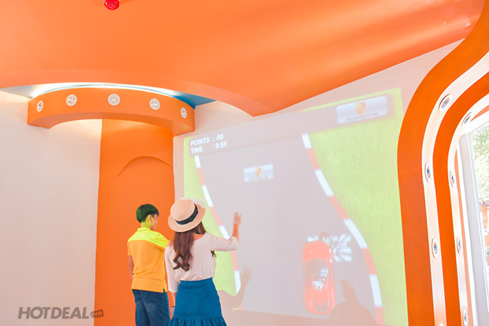 Bao gồm 2 khu riêng biệt cho người lớn và trẻ em, với hàng chục trò chơi ứng dụng công nghệ tương tác ảo AR, QR, Motion Interactive, interative shooting – climbing, AR painting… cực kì hiện đại lần đầu tiên có mặt tại Việt Nam.