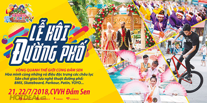 + Lễ Hội Đường Phố - Vòng Quanh Thế Giới cùng Đầm Sen: 21, 22/07/2018: Hòa mình cùng những vũ điệu đặc trưng các Châu Lục. Sân chơi giao lưu nghệ thuật đường phố: BMX, Skateboard, Parkour, Patin, YOYO……….