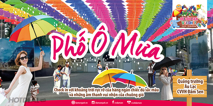 + Phố Ô Mưa tại Quảng trường Âu Lạc: Bạn tha hồ check in với khoảng trời rực rỡ của hàng ngàn chiếc dù sắc màu và những âm thanh vui nhộn của chuông gió với hệ thống wifi free phủ khắp Công Viên.
