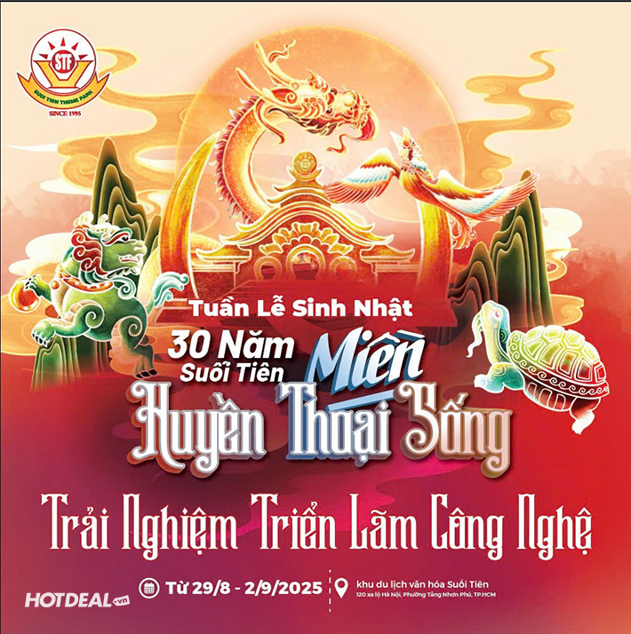 Suối Tiên - Combo Vé Cổng + Trò Chơi Vui Chơi Giải Trí. Voucher 245,000 VNĐ, Còn 210,000 VNĐ, Giảm 14%. Chỉ Có Tại Hotdeal.vn!