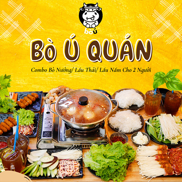 Bò Ú Quán - Combo Bò Nướng/ Lẩu Thái/ Lẩu Nấm Cho 2 Người. Voucher 269,000 VNĐ, Còn 199,000 VNĐ, Giảm 26%. Chỉ Có Tại Hotdeal.vn!