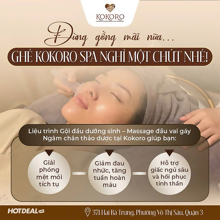 Kokoro Spa & Aesthetic - Gội Đầu Dưỡng Sinh 60’, Chạm Đến Sự Thư Giãn. Voucher 399,000 VNĐ, Còn 299,000 VNĐ, Giảm 25%. Chỉ Có Tại Hotdeal.vn!