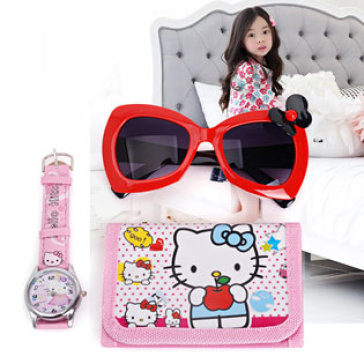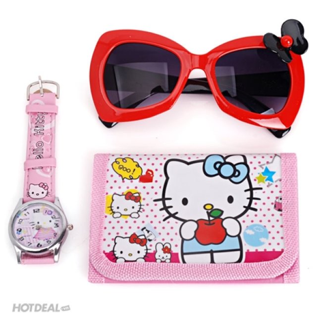 Bộ 3 Món Hello Kitty Ví + Đồng Hồ + Mắt Kính Cho Bé