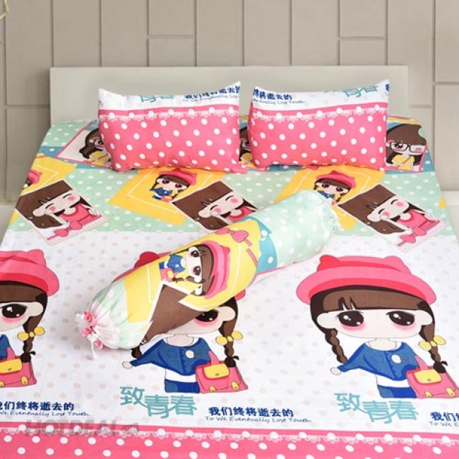 Bộ Drap Mền Cotton Nhung 1m6 x 2m Họa Hình Manga