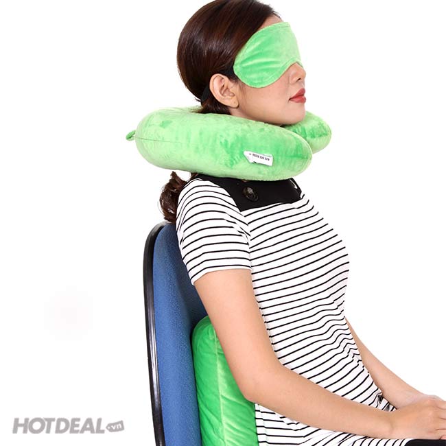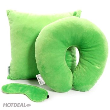 Combo Gối Tựa Lưng + Gối Chữ U + Bịt Mắt Xanh Lá