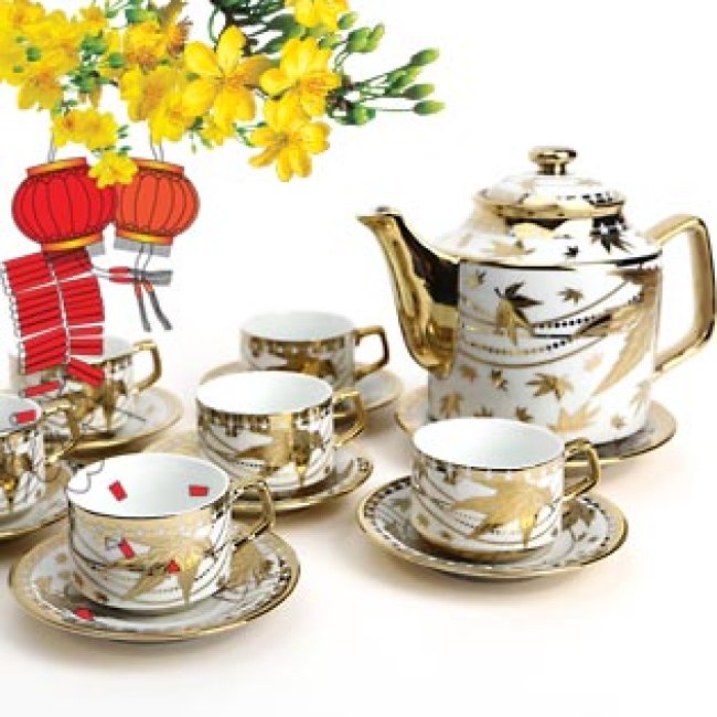 Bộ Tách Trà Sứ Nhũ Vàng Cao Cấp