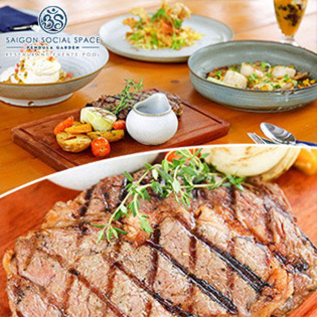 Trải Nghiệm Không Gian Ẩm Thực Sang Trọng Tại Saigon Social Space Với Combo Steak Bò Black Angus Đẳng Cấp Cho 2 Người Tại Saigon Social Space. Voucher 650,000 VNĐ, Còn 350,000 VNĐ, Giảm 46%. Chỉ Có Tại Hotdeal.vn!