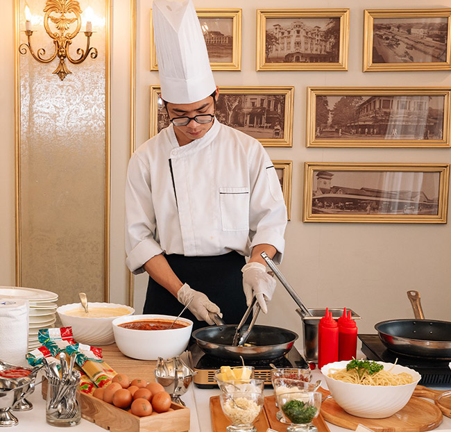 + Mức giá trên đã bao gồm : Nước lọc, trà và cà phê suốt tiệc. Tặng kèm gói trang trí cơ bản đối với tiệc sinh nhật và kỷ niệm. Chương trình giải trí theo ngày: Band nhạc Philippines biểu diễn từ 15-30 phút tại mỗi sảnh ăn tối, ảo thuật, violin,… tùy từng ngày. Thuế VAT và Phí phục vụ.