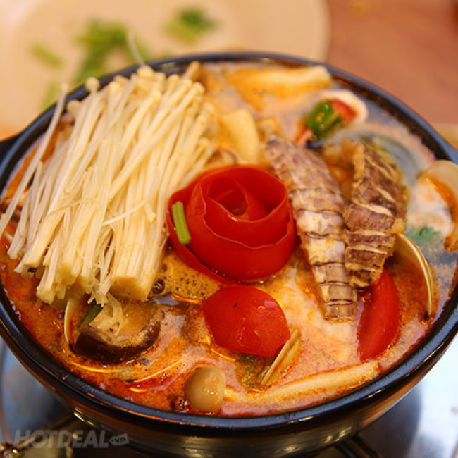 Chìm Đắm Trong Hương Vị Ẩm Thực Của Xứ Sở Chùa Vàng Với Combo Lẩu Thái Tomyum + 01 Viên Kem Xôi Dừa Tự Chọn Hoặc 01 Trà Sữa Tại Mango Story Saigon. Voucher 118,000 VNĐ, Còn 79,000 VNĐ, Giảm 33%. Chỉ Có Tại Hotdeal.vn!