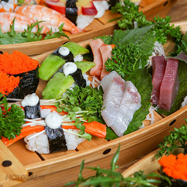 Thuyền Sashimi, Sushi 12 Món Dành Cho 02 Người - Sushi House. Voucher 218,000 VNĐ, Còn 145,000 VNĐ, Giảm 33%. Chỉ Có Tại Hotdeal.vn!