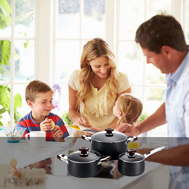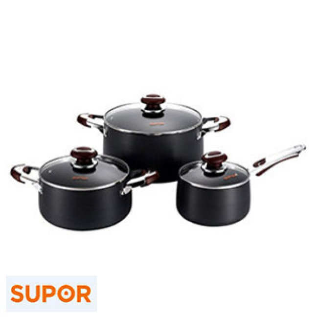 Bộ Nồi Oxy Hóa Cứng Nắp Kính Supor 3 Cái TW07007 Cao Cấp