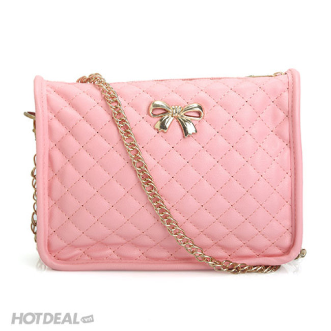 Túi Đeo Chéo Caro Đính Nơ Màu Hồng Phấn