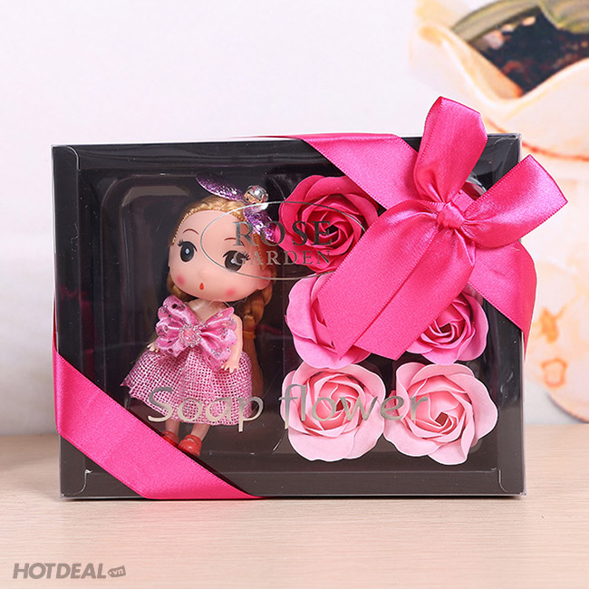 Hộp Quà Tặng Hoa Hồng Sáp Vĩnh Cữu Kèm Búp Bê Xinh Xắn