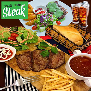 Hệ Thống Thế Giới Steak - Combo Steak Pháp Giá Việt + Khoai Tây Chiên, Salad, Nước Ngọt Cho 02 Người