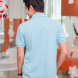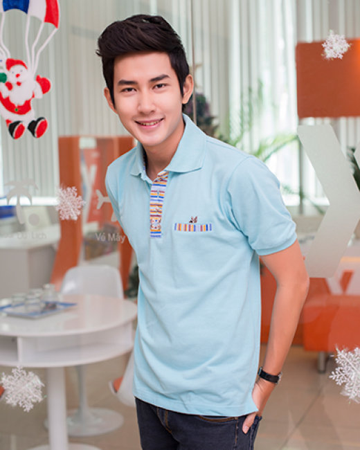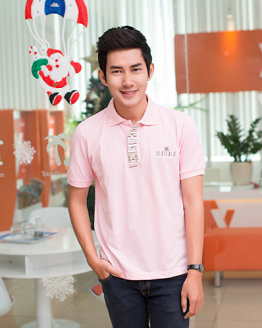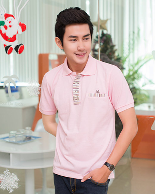 Áo Thun Nam Cổ Xẻ Trụ Phối Kẻ