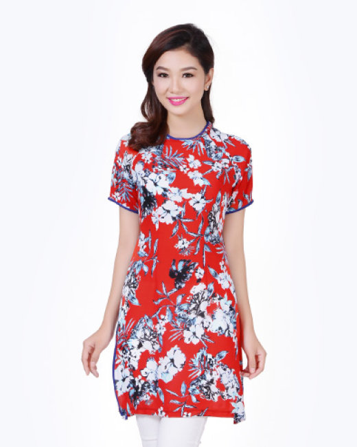 Áo Dài Cách Tân Họa Tiết Màu Đỏ