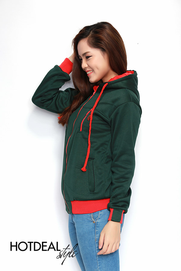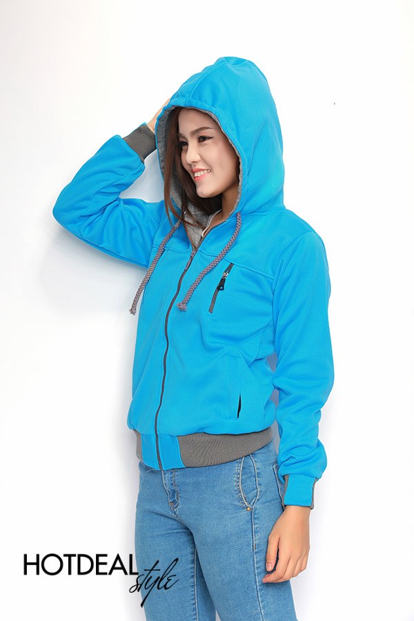 Áo Khoác Nỉ Dây Kéo Màu Xanh Ngọc