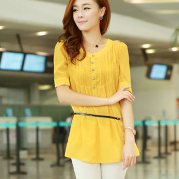 Áo Kiểu Xếp Ly Form Dài Màu Vàng