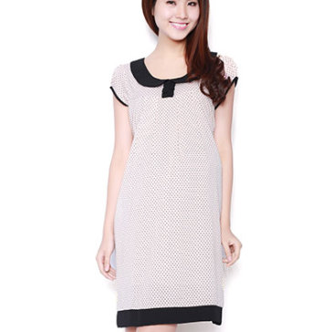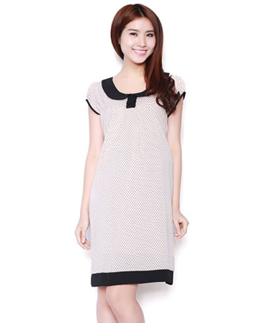 Đầm Bầu Bi Tay Búp Phối Màu Kem