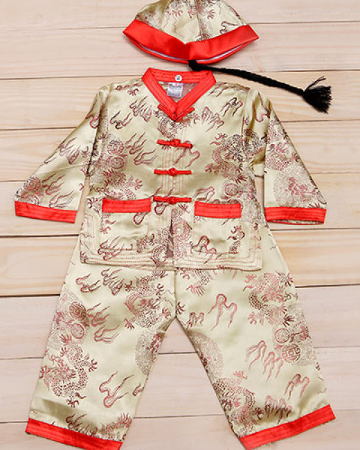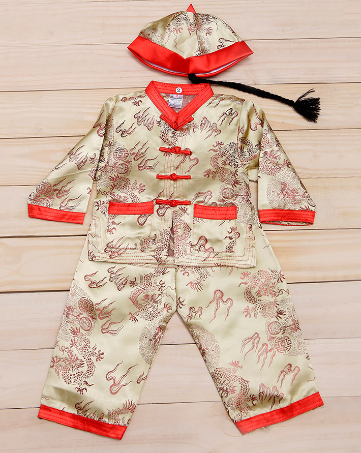 Set Bộ + Nón Trung Hoa Cho Bé Trai Màu Vàng