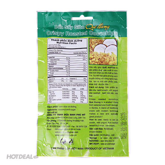 Combo 10 Bịch Dừa Sấy Giòn Quê Hương - Cực Giòn Cực Ngon - An Toàn Sức Khỏe . Giá 100,000 VNĐ, Còn 79,000 VNĐ, Giảm 21%. Chỉ Có Tại Hotdeal.vn!