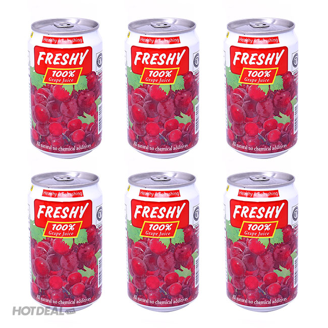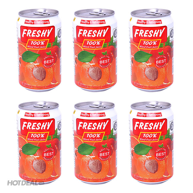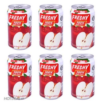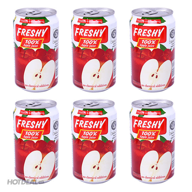 Giải Nhiệt Với Lốc 6 Lon Nước Ép Trái Cây Freshy 100% Nguyên Chất (Nho, Táo, Cam, Hỗn Hợp) Táo. Giá 95,000 VNĐ, Còn 75,000 VNĐ, Giảm 21%. Chỉ Có Tại Hotdeal.vn!