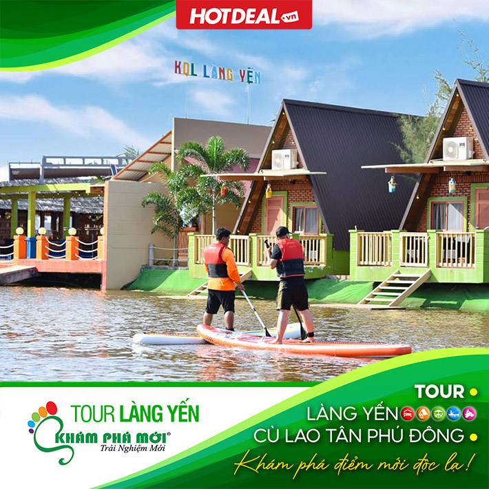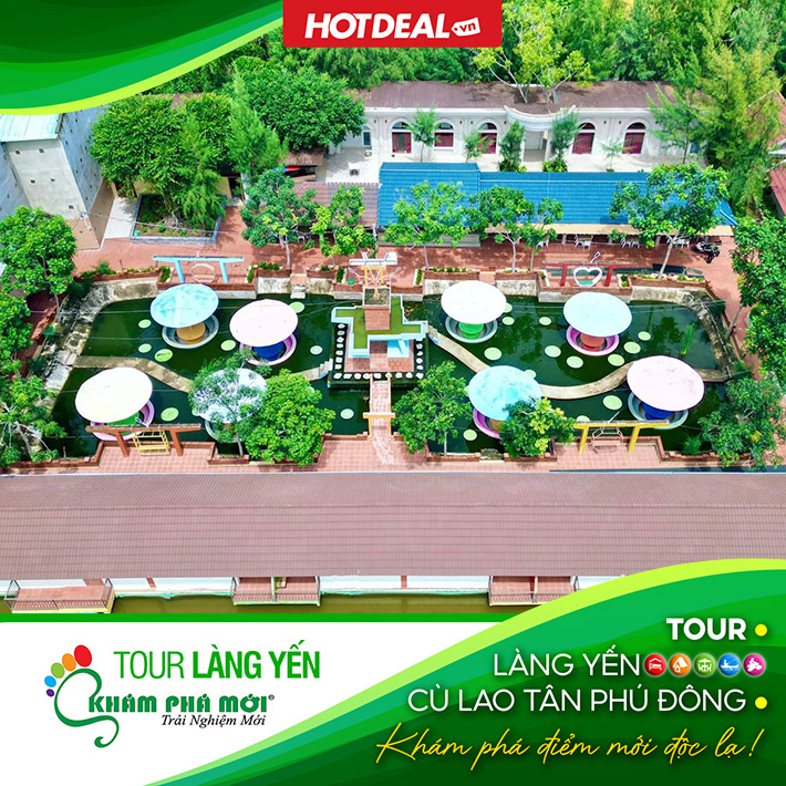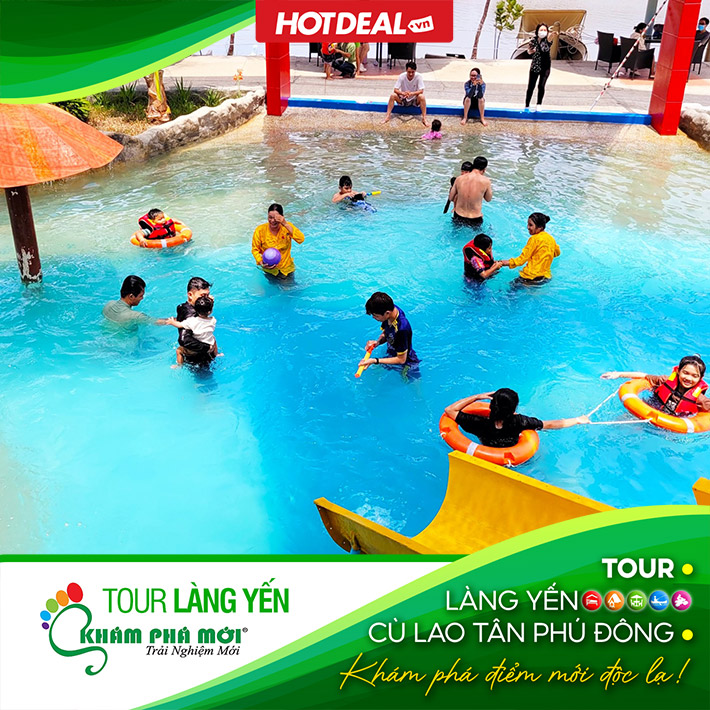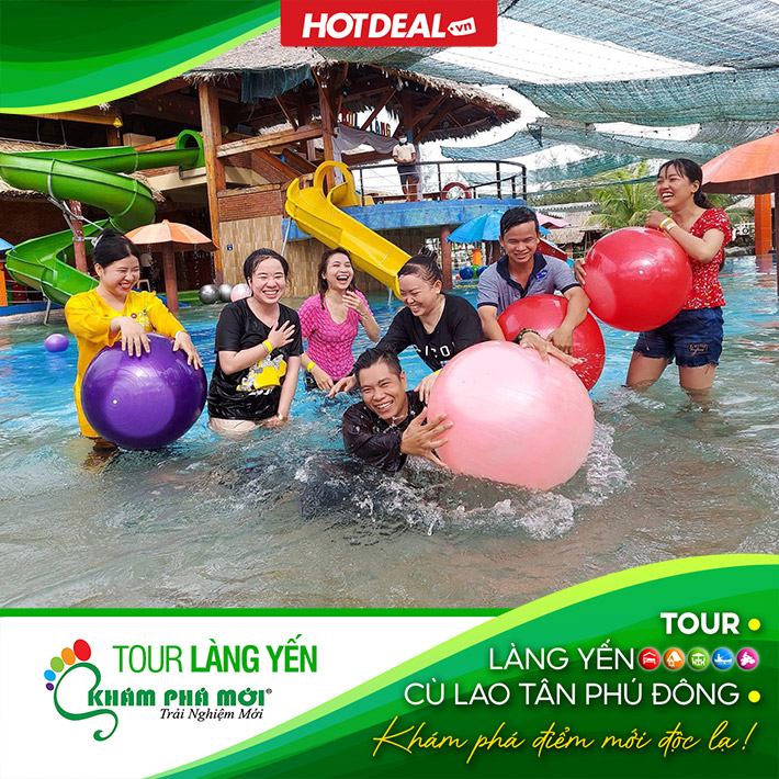 Phí tham gia trò chơi dưới nước như: chèo thuyền sup, thuyền kayak, thuyền thúng, thuyền ống, đạp vịt, đạp thuyền cano, chạy xe đạp, công viên nước tích hợp với đường trượt ống cảm giác mạnh… tại KDL Làng Yến – Tiền Giang.