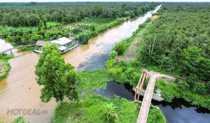 - Sáng: Sau bữa điểm tâm sáng, Đoàn tiếp tục đi theo quốc lộ 63, đến huyện U Minh Thượng (tỉnh Kiên Giang), tham quan Vườn Quốc gia U Minh Thượng, nơi đây được xem như một bảo tàng thiên nhiên lớn về hệ sinh thái đất ngập nước, trong đó nổi bật là cảnh quan thiên nhiên của vùng đồng bằng sông Cửu Long. Sau khi đi qua con đường dẫn vào rừng rất đẹp, thỉnh thoảng xuất hiện nhiều thú rừng, đặc biệt là khỉ đàn, chiếc võ lãi sẽ đưa Quý khách đến hồ Hoa Mai, sân dơi, sân chim và trảng bồn bồn đầy cá.