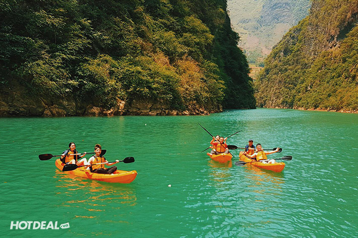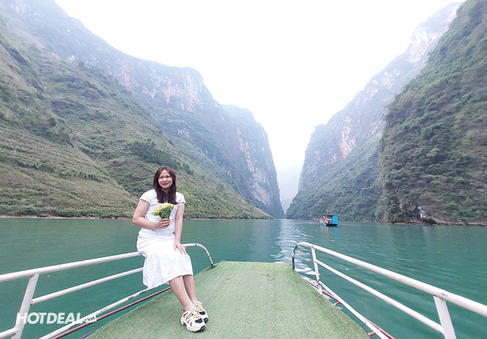 Quý khách tiếp tục hành trình với trải nghiệm đi thuyền trên sông Nho Quế, đoàn sẽ có những tấm hình check-in độc lạ với dòng sông Nho Quế và hẻm vực Tu Sản. Tu Sản được xem là “đệ nhất hùng quan” với chiều cao vách đá lên tới 700–800m, chiều dài tới 1,7km, sâu 700–900m, là danh thắng kỳ vĩ độc nhất của vùng cao nguyên đá Đồng Văn (chi phí tự túc).