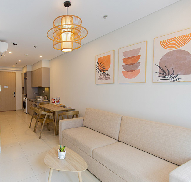 + 2N1Đ tại căn hộ gồm 1 phòng ngủ (giường 1m6) và 1 phòng khách (Sofa Bed 1m4) dành cho 2 người lớn.