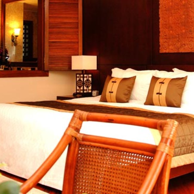 Vẻ đẹp cổ điển thể hiện qua những cánh cửa, đèn ngủ, bàn ghế bằng gỗ sẫm màu, trong khi khách nghỉ dưỡng có thể cảm nhận được sự thoải mái tiện nghi của ghế sofa, của phòng tắm bằng đá cẩm thạch rộng rãi, của mùi thơm từ những hương liệu tự nhiên trong phòng và, không thể thiếu là chiếc giường ngủ nhiều lớp êm ái. Chất liệu vải nệm được dệt với 100% cotton. Với không chỉ một lớp nệm, toàn bộ giường đều được lót thêm một lớp bông giúp gia tăng sự đàn hồi.