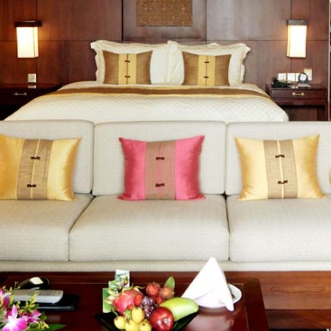 Vẻ đẹp cổ điển thể hiện qua những cánh cửa, đèn ngủ, bàn ghế bằng gỗ sẫm màu, trong khi khách nghỉ dưỡng có thể cảm nhận được sự thoải mái tiện nghi của ghế sofa, của phòng tắm bằng đá cẩm thạch rộng rãi, của mùi thơm từ những hương liệu tự nhiên trong phòng và, không thể thiếu là chiếc giường ngủ nhiều lớp êm ái. Chất liệu vải nệm được dệt với 100% cotton. Với không chỉ một lớp nệm, toàn bộ giường đều được lót thêm một lớp bông giúp gia tăng sự đàn hồi.
