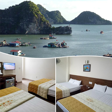 + Khách sạn trung tâm thị trấn Cát Bà, gần sát cổng chào, thuận tiện cho khách đi chơi, tham quan, tắm biển tiêu chuẩn 2* đầy đủ tiện nghi, sạch sẽ (4 người/phòng)
